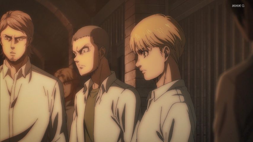 コニーが怒鳴ってるあの状況でまずは話を聞こうってなるアルミンは賢いしすごいけど、私はコニーの気持ちになってしまうな。アルミンもある意味特別だよ。あと関係ないけど大人ジャンのビジュアルすきです