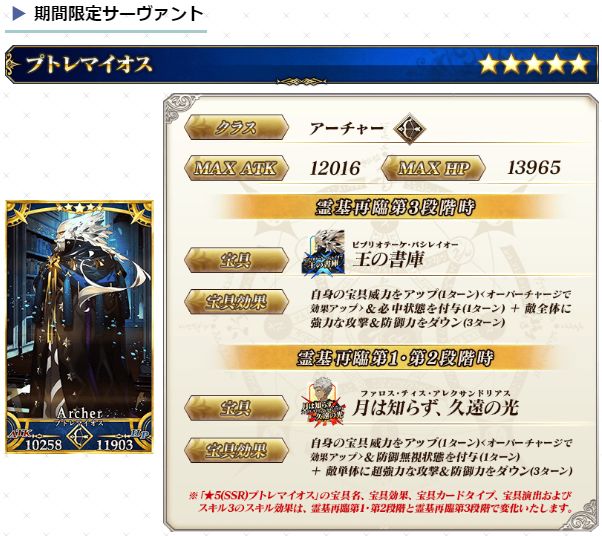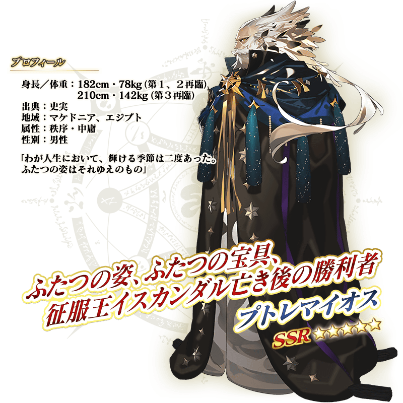 新登場の期間限定サーヴァント「★5(SSR)プトレマイオス」を含むサーヴァント3騎と期間限定概念礼装3種をピックアップする召喚を開催!