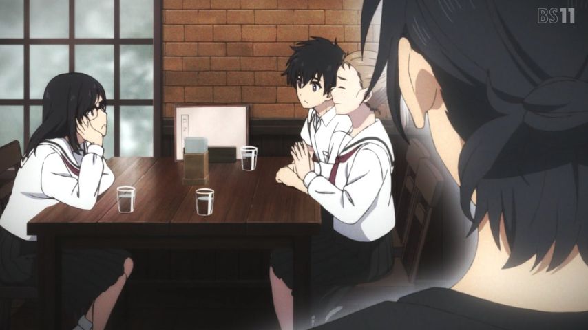 サマータイムレンダ、13話。新OPとED。4人のやり取り。澪と時子。窓と父母、根来。父の電話相手は誰?題名はハイネと竜之介。潮の能力。4本腕にひづるやられ、ハイネ達からの説明。潮の判断でループへ。14年前の竜之介記憶。慎平両親の水中考古学が繋がっていそう。旧菱形医院の窓にハイネで引き。