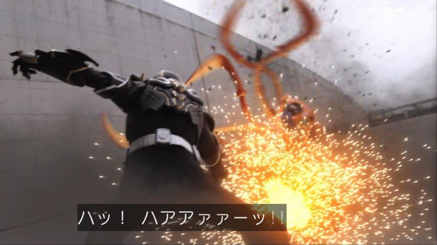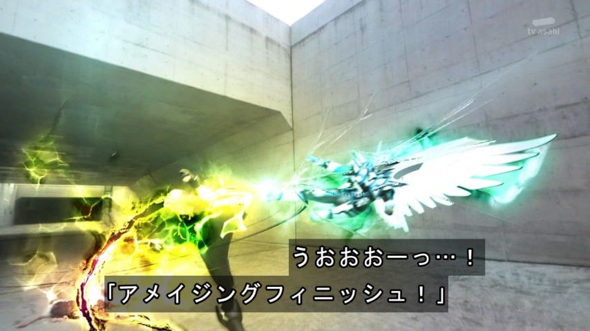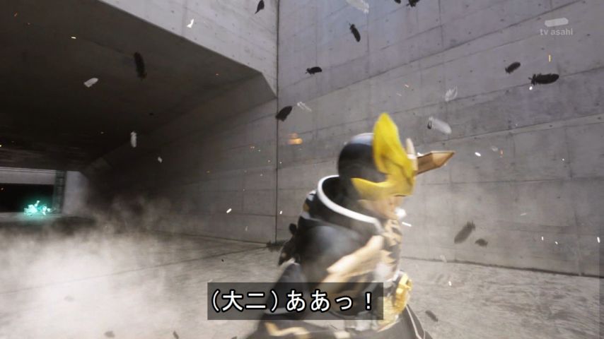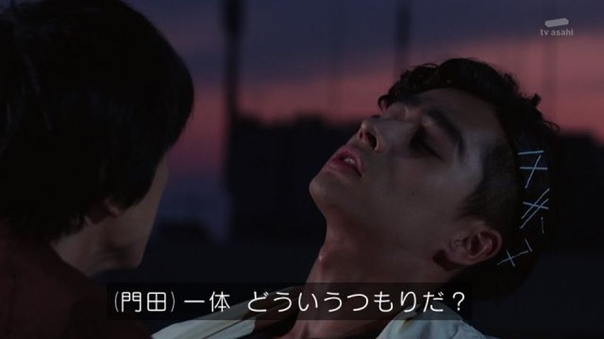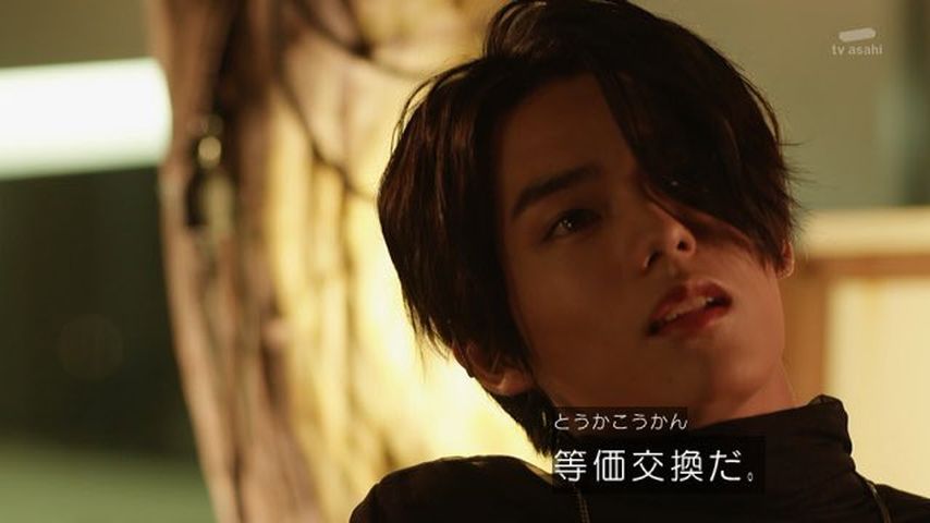木下半太脚本。一輝の記憶消失が深刻化する中、ギフの痕跡=全ライダー抹殺を掲げる仮面ライダージュウガとなった狩崎の暴走がはじまる…。最後の最後で狩さんが最強の敵に変貌。目力が凄い…。