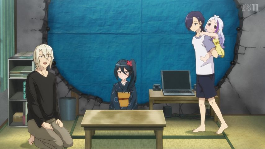 「はたらく魔王さま!!」5話。暗がりでのアラス・ラムス写真にニヤつく魔王がキモいw 礼儀やマナーをわきまえる魔王、悪魔と言えども根は常識人。ちーちゃん、母親に認めてもらえたのは大きな一歩か? 職も住処も失ったが、新たな職場でもいつも通りの魔王が頼もしい。やはり父は強い? #maousama
