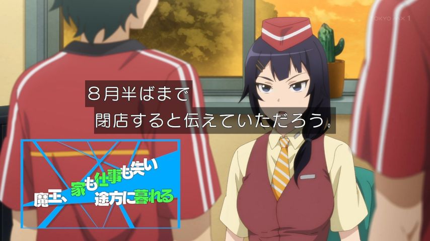 はたらく魔王さま!! 5話、今回は改装工事により職を、修理工事により住居を失う真奥一行ということで、ここでガブリエルに攻められたら終わり感の漂う境遇に絶望を感じる回だったな。