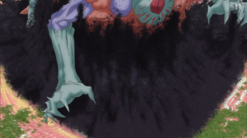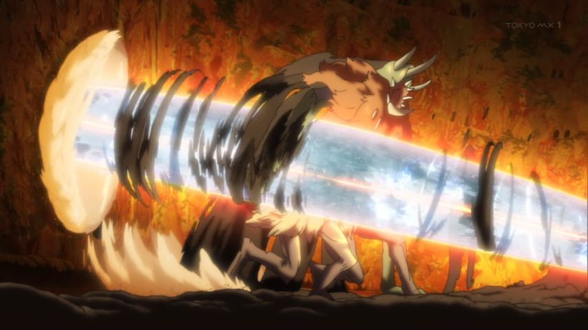 メイドインアビス 烈日の黄金郷 9話。レグの頭の上でごろごろしていたマスコットキャラのようなファプタさん目を見開いた途端に怖すぎるw落差がひどい。ジュロイモーとの戦闘で火葬砲を使ったことで外壁に開いた大穴から姿を現し怨嗟と呪いを込めた口上を述べるシーンが鳥肌ものだった。 #miabyss