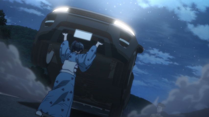 車を素手で止めたうえで車の天井を剣でぶち開ける、恵美と鈴乃の怒りのパワーが恐ろしい。連続窃盗してたのも悪いとは思うがあそこまでやられると逆に可哀想…