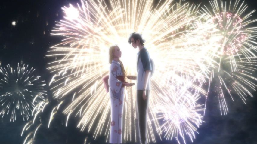 浜辺での2人のやり取りと花火