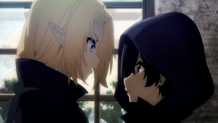陰の実力者2話終了ー。厨二病が魔力のある異世界に転生して、ますます厨二拗らせる話かー。偶然助ける形になったエルフ?に、「悪の教団名」でっち上げて言ったら間に受けて、どんどん仲間を連れてきたみたいな?(しかも適当に言った悪の教団が実在したー)