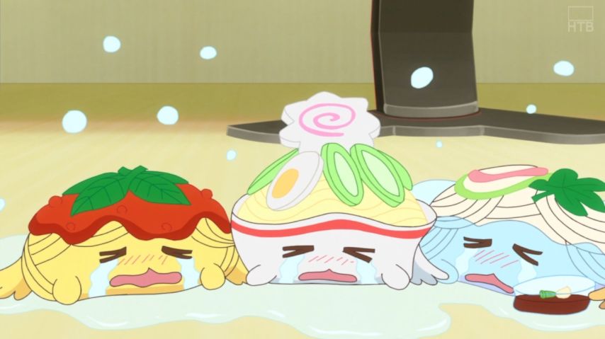 うどんのレシピッピを探す為に使った麺占いでエナジーを消費し、ヤムヤムを上手く戦わせる事が出来ないと落ち込むメンメン。そんな時に、ラーメンの麺とスープに例えて、励ますヤムヤムが良かったです。