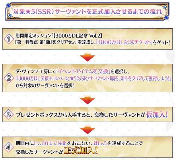 【期間限定】「3000万DL記念チケット」で交換した★5(SSR)サーヴァントの強化時獲得経験値が3倍!