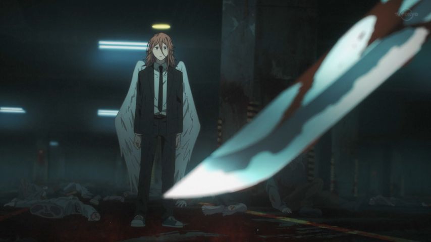 #チェンソーマン 11話、必要悪とは、悪党の自分に対する言い訳に過ぎないと言い切るマキマ、怖いけどカッコ良い。特異四課の魔人と悪魔、中の人達は豪華だし暴れっぷりも気合入ってる。早川の前には、よりにもよって姫野先輩の悪魔が。未来の悪魔が気に入るのも分かるぐらいの不幸からの反撃なるか?