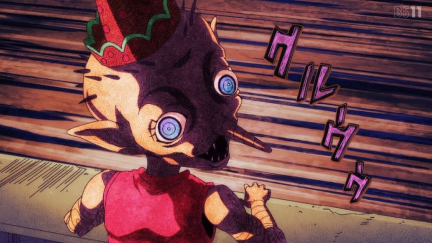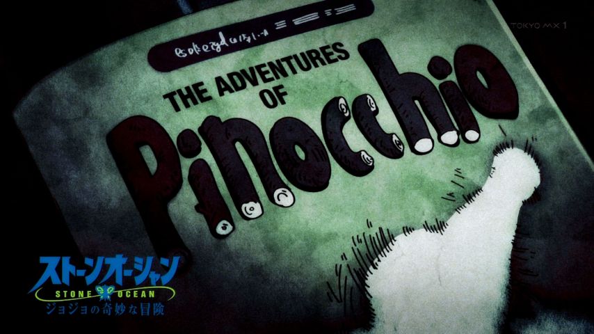 「ジョジョの奇妙な冒険 ストーンオーシャン」第25話:人が描かれた標識から次の場面にオーバーラップするなど、演出がいよいよ洋画じみてきたな。今回のスタンドは御伽話の登場人物。元ネタは明らかに分かるものの、ビジュアルが絶妙にキショいのが秀逸。あんなので子供達が味方になるわけねーだろ。