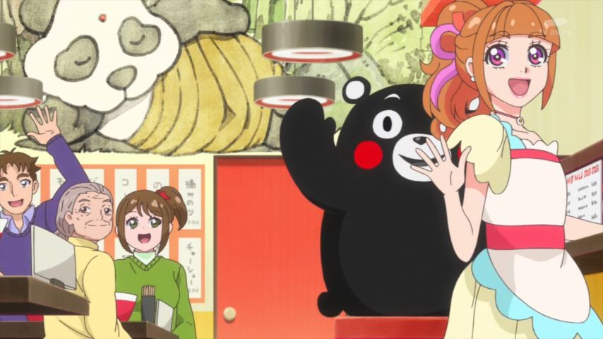 デリシャスパーティ♡プリキュア最終回(43話):自分もプリキュアキャラですよと言わんばかりに駆けつけるくまモン(ぇ