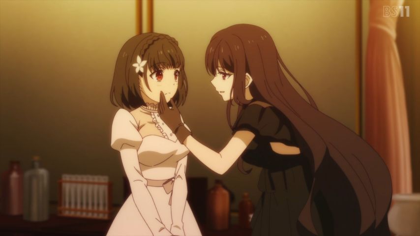転生王女と天才令嬢の魔法革命7話、夜這いアニメだ。レイニ嬢とメイドのカプもありだな。吸血ってもう実質......。婚約破棄から全てレズに収束していく。凄い、ユフィが助手っぽいことしてる。あれで言いくるめられるおっさん達もちょろい。それはそれとして、前回悪役オーラだしてたアル君は?