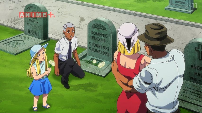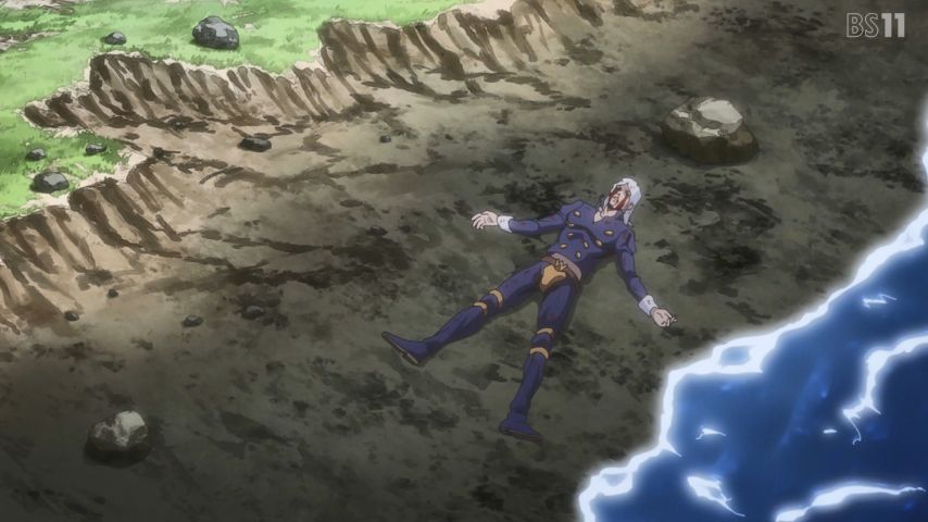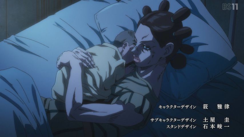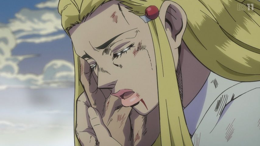 プッチ神父とウェザーリポートの因縁が語られる重厚な過去回。ジョジョの一つのテーマである“逃れられない宿命”の物語。見ていてつらいのだけど引き込まれて見た。淡々としていながら感情をゆさぶってくる大川氏のナレーションがすばらしい