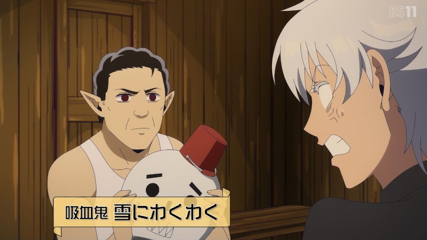 #吸血鬼すぐ死ぬ アニメ二期11話。雪山で遭難して…ゼンラニムとマイクロビキニと温め合うのはたしかに嫌。ロナデュエル…半田はかなりこじらせたアンチですな。…そして…今期はノースディンの前後編で終わりなのね、今作でも珍しい正統派でキザな吸血鬼ですな。