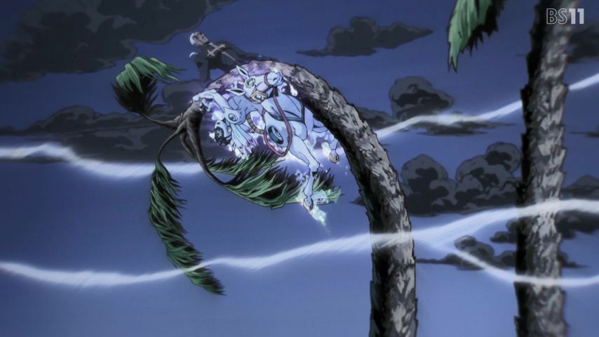 ジョジョの奇妙な冒険 ストーンオーシャン(6部) 36話、今回は天国の時を迎えたプッチ神父のメイド・イン・ヘブンが大暴れということで、能力の真相が判明する前から背景の雲が目まぐるしく流れるという違和感の演出が、アニメーションという映像媒体ならではの回だったな。