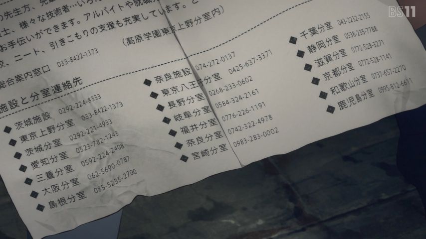 高原学園のマークを見つけて、施設がある事を知って段々と確信に近づいている気はする。それにしてもスローペースではあるけどまあ次回か次々回辺りで大きな盛り上がり欲しいところだな。高原学園の研究の目的は果たして何なのか。