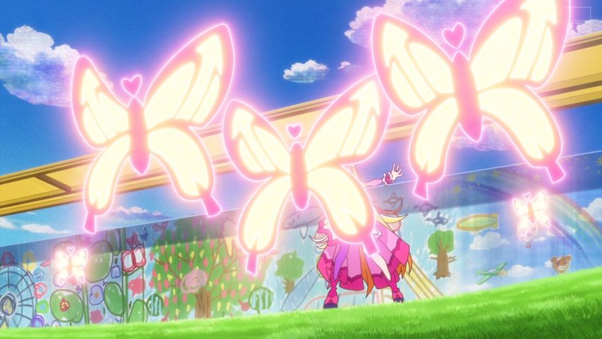 あげはさんのことを気にしてるツバサくん、可愛かったな。ツバサくんとあげはさんとエルちゃんの自由に描いた絵の合作がとても良かったし、そのことがウィングとバタフライの合体技に反映されてて凄かった。格好良いよりモフモフが良かったのね。想い合わさってる!