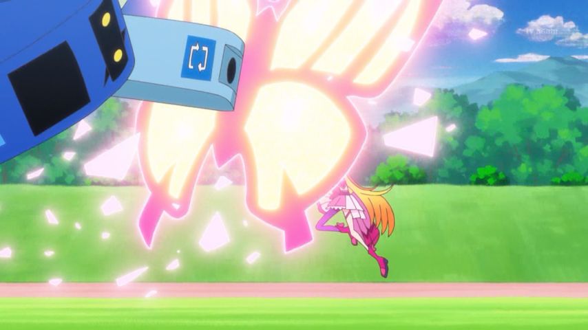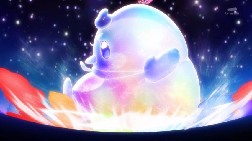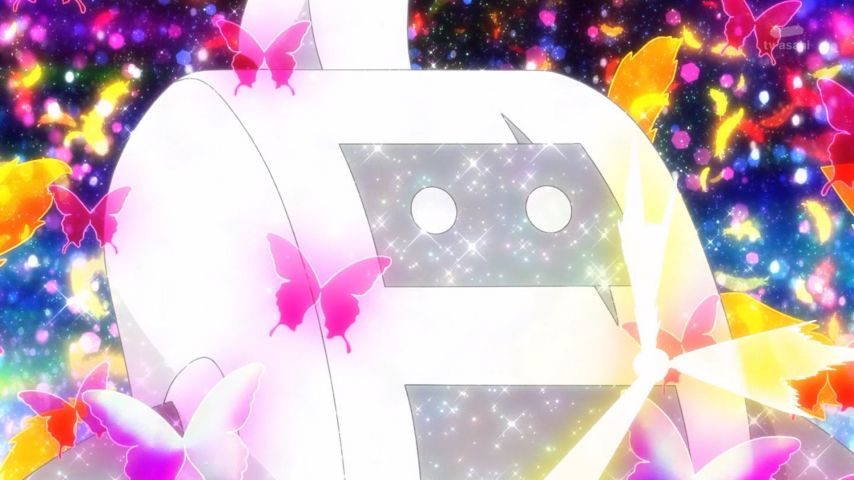 ひろプリ19話 やっぱバタフライのスペック盛られてるな。遠隔で盾複数展開して操作できるとか便利すぎる。あとタイタニックレインボーのツバサ本体が出てくるとこでまほプリ49話のモフルン思い出した。#ひろプリ