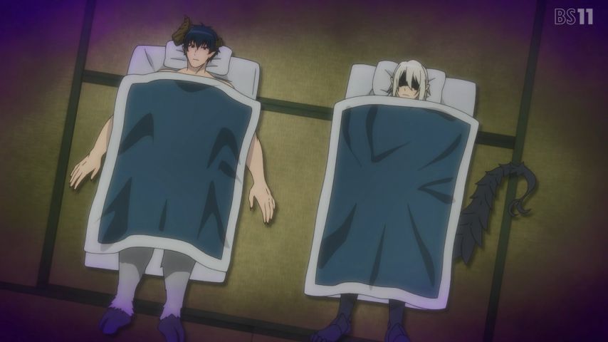 「はたらく魔王さま!!」#16-家電は持ち帰る前提として布団は買わずに過ごしていた魔王様w アラス・ラムスのため見かねたエミリアが布団代援助すると。聖蹟桜ヶ丘へ、傍目にはもう夫婦、"家族"を意識する度遠い目のエミリアw 千穂の誤解w なんともしょうもないEDカットw #maousama
