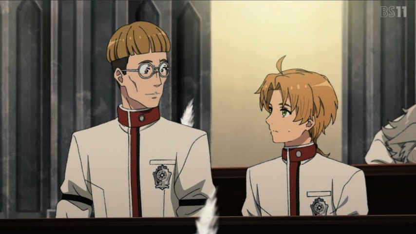 #無職転生 2期5話。ED治療のためにやってラノア魔法大学ではザノバとシルフィーという懐かしい顔とも再開する。…シルフィーはフィッツという男装しているのだが、あの柔らかい物腰を隠すために無口を貫いているのだろう。…ルディがトラブルに巻き込まれやすいのは前世からの因縁ですな。