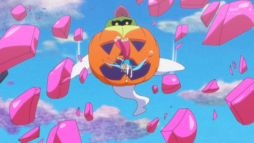 『ひろがるスカイ!プリキュア』39話。ハロウィン回。キュアパンプキンの変身バンクは草だった。バッタモンダーさんもすっかり道化になったな。この回は全体的にハロウィンの美術・デザインがすごくいい #precure