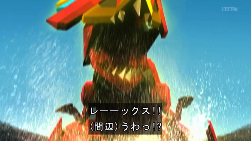 新たなるレベル10、恐竜型ケミー・エックスレックスが出現!人を丸呑みし記憶を覗くエックスレックスにさえも宝太郎はガッチャの姿勢を崩さない。