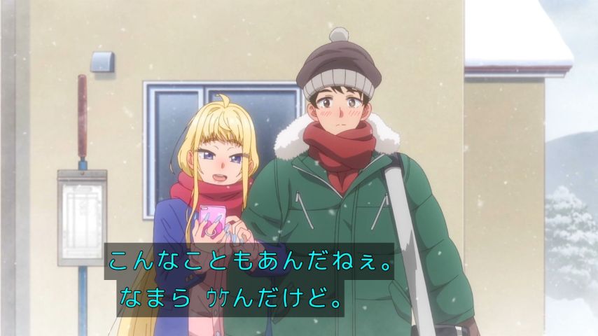 寒いところならではの鼻の先と耳が真っ赤になる様子で女の子のかわいいを跳ね上げるのも良し、舞台ならではの方言で萌えを重ねるのも良し、程よい品と程よい品のなさでちょうどいいラブコメを作り上げるのも良し...最強か?