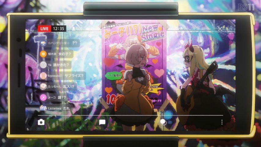 #ヨルクラ 1話、動画工房のオリジナル作品。作画は文句無し。かつては輝いていたが夢破れた少女達が出会い、再び輝こうとする物語。普通に生きる事は間違いではないけど、まひるは夢から逃げてるだけ。それに気付いたから、花音の歌に応じたのでしょう。ライブを乗っ取られたみー子はちょっと気の毒。
