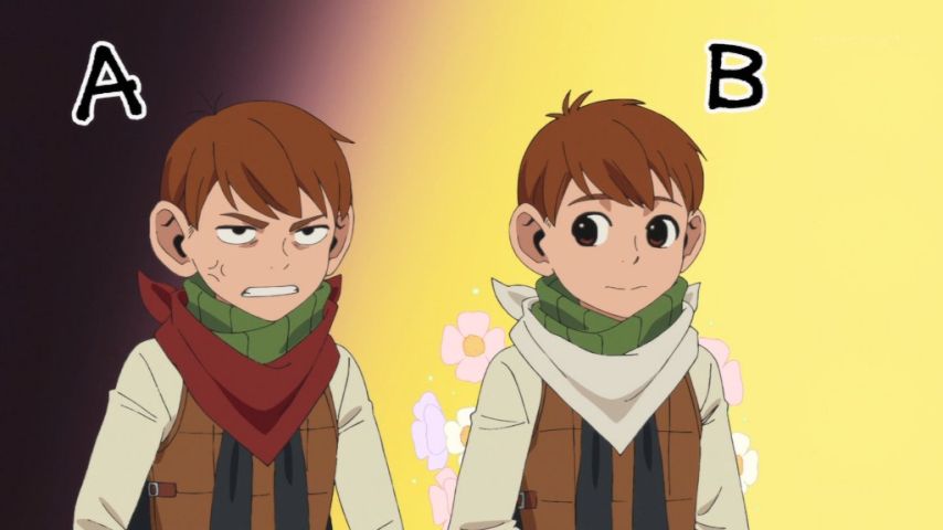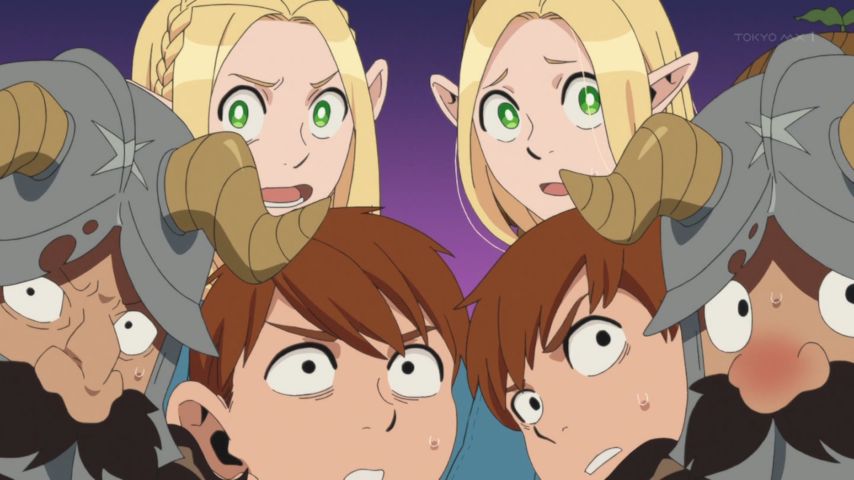いざ迷宮探索と思ったら偽者はどっちだゲームが始まった(笑)顔は同じでも、目つきや表情で見ている側に分かる違いを出してるのが細かいと思った。料理させると結構違いが出るもんなんだね...特にマルシルは分かりやすい。直感で本物を見定めたライオスのファインプレー回!