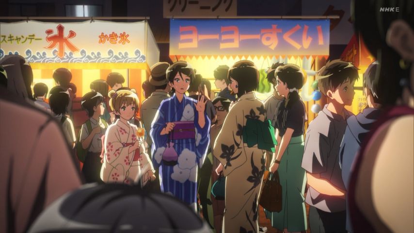 響け!ユーフォニアム3_5話。3話・4話と久美子のマネジメント達人ぶりを描いておいて、当の久美子自身は自らの進路も空白の茫洋とした状態。このアンバランスさの上に真由の誘いやあがた祭を断ってまで過ごす麗奈との時間の特別感が乗っかる事で、青春の唯一無二の輝きがいや増す。どこまでもシンプ…