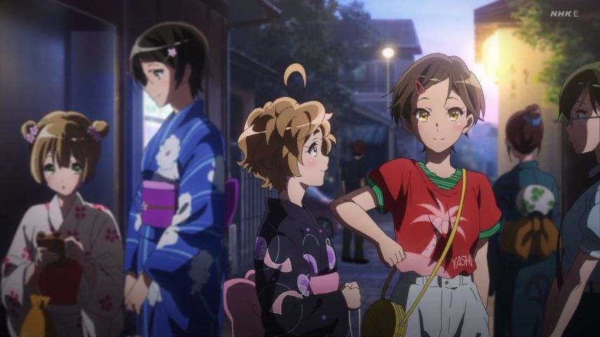#ユーフォ3期 5話、大会毎にオーディションを行う事になったが、真由は乗り気じゃない。自分が出れば枠が1つ埋まるからとは凄い自信だ。求は緑とくっつくと思ってたけど、奏とも悪くない? 祭りの喧騒に背を向けての久美子と麗奈の合奏と会話に微笑が止まらない。百合寸前の絶妙さが良い。#anime_eupho