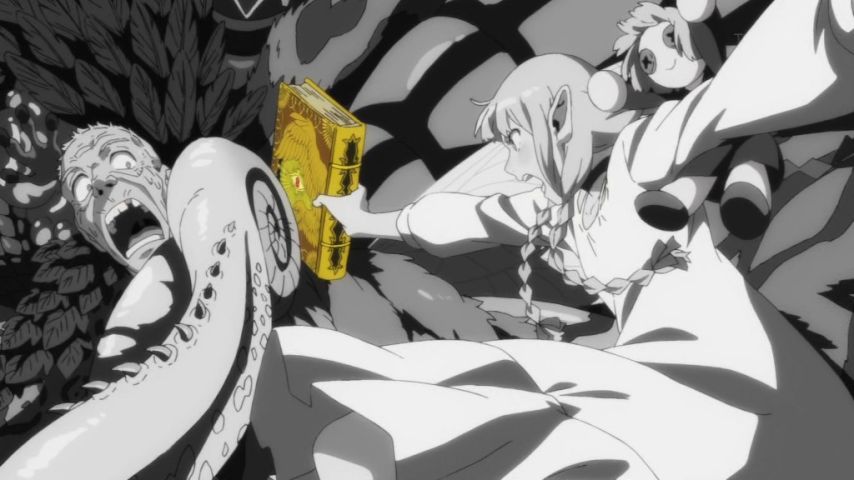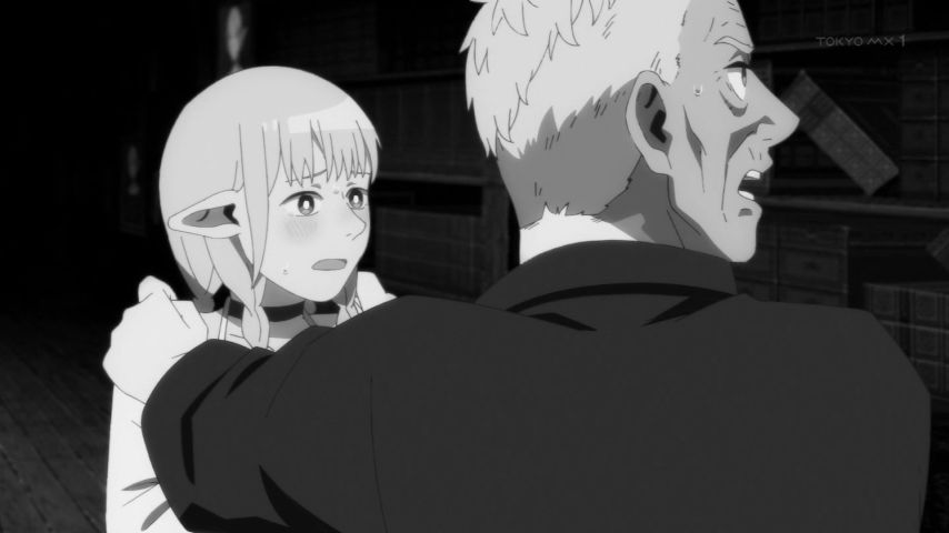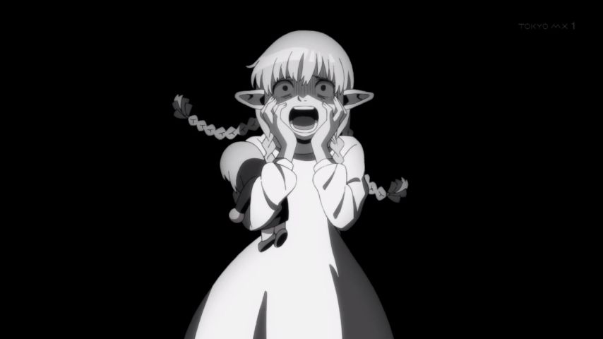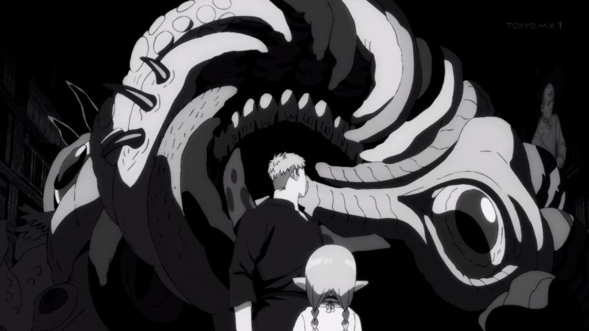 #ダンジョン飯 19話視聴。新たに仲間に加わったイヅツミの猫っぽい仕草が可愛かったけど、今回は何といっても後半の夢魔が見せるマルシルの夢が秀逸でした。長命なエルフならではの別れに対する恐れをモノクロの画面で表して、ライオスの励ましで前へ進んだ瞬間に鮮やかに色づく演出が素晴らしかった