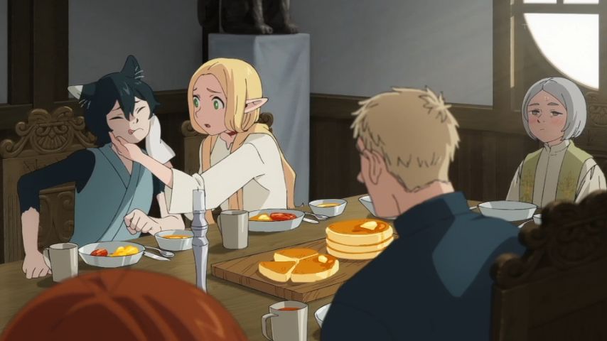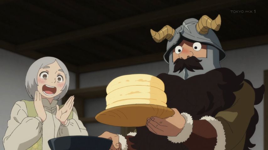 パンケーキ美味しそうやったなぁ、、、。グリフィンって聞いてからのセンシの動揺。しかも拐われてヒヤヒヤしたけど、生きてて良かった。マルシルが召喚したオリジナル使い魔思ってたんと違うくて笑ったwライオスの顔よw操ってる時のマルシルも面白かったwスカイフィッシュと
