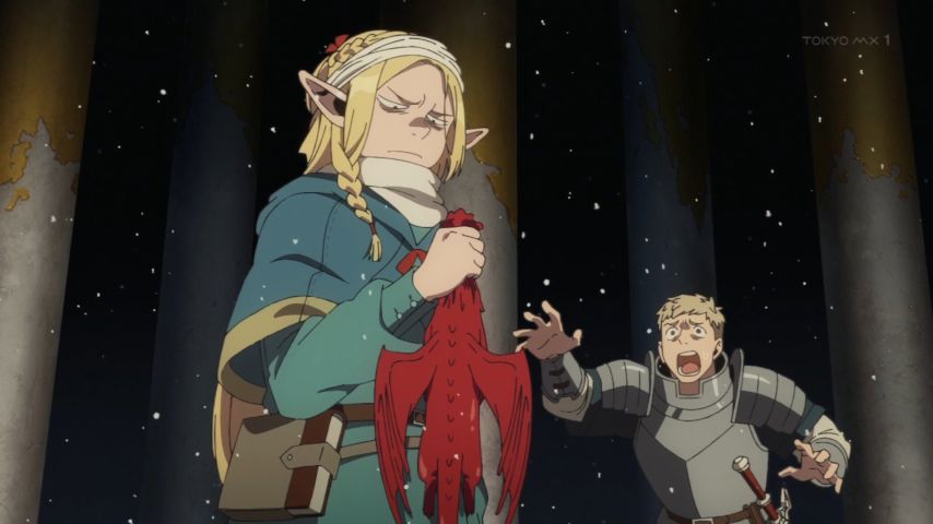 ダンジョン飯 22話。紅一点のヒロインなのに身体張ってギャグ堕ちするマルシルさん。(スカイ)フィッシュ&チップスも笑った。一方でセンシの過去でしっかりシリアス方面へ舵を切る。飽きさせないのはさすがやなぁ。 #dun_meshi #ダンジョン飯