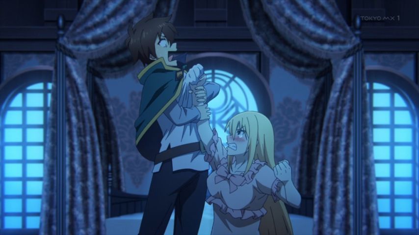 #このすば3期 9話。ダクネスが去った理由は、借金のカタに結婚。暴力でどうにでもなんじゃね?とか、貴族の誇りはそんなことを許さないのだな。ダクネスとカズマのカプは新鮮。ラブコメ始まりそうになるとヒヨるカズマ、ある意味誠実(笑)前半のあの貴族がカギになったりする?#このすば #konosuba