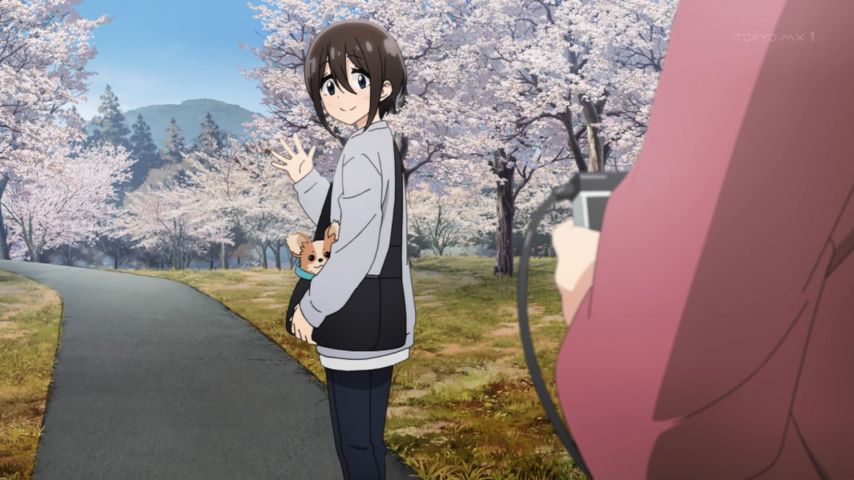 #ゆるキャン 3期10話。ネコいる!(ババーン‼︎)の開幕。桜と共にそれぞれの休日。緻密な桜の描写に、少しまだ寒い空気まで感じます。新キャラ絵真とメイも可愛い。でも今回はソロキャンデビューの千明がいつにも増して魅力的でした。誰この美少女…(笑)そして犬子もいる!(ババーン‼︎)#yurucamp