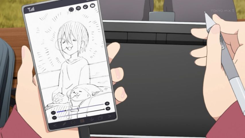初対面の子に対してスマホとタブ奪う恵那強い…😨ちくわ効果かな?でも絵描きなのに野クルに入るの?