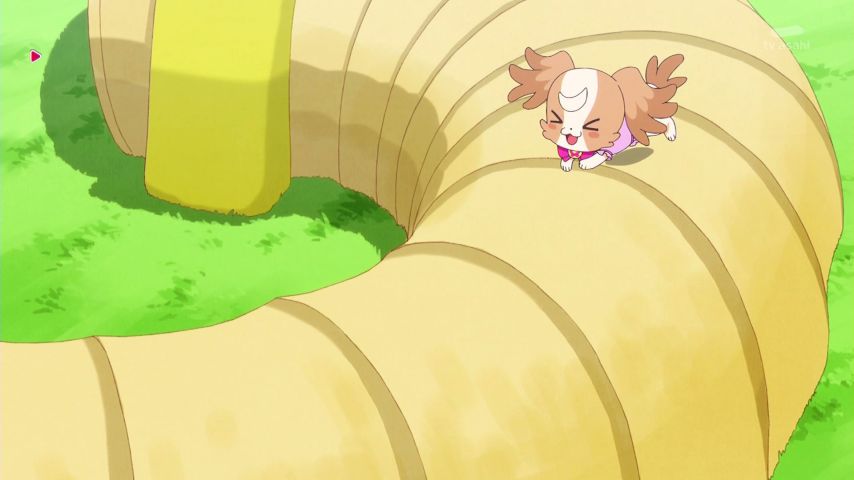「わんだふるぷりきゅあ!」第22話:今回はアジリティに挑戦するこむぎ。人語で会話できる分、他の犬に比べてコミュニケーションに関しては大幅な長があるはずなのだけど、命令は結局我流の物で行くところが軽く笑える。まぁ、それも彼女たちが紡いできた彼女たちだけの絆の証って奴だな。