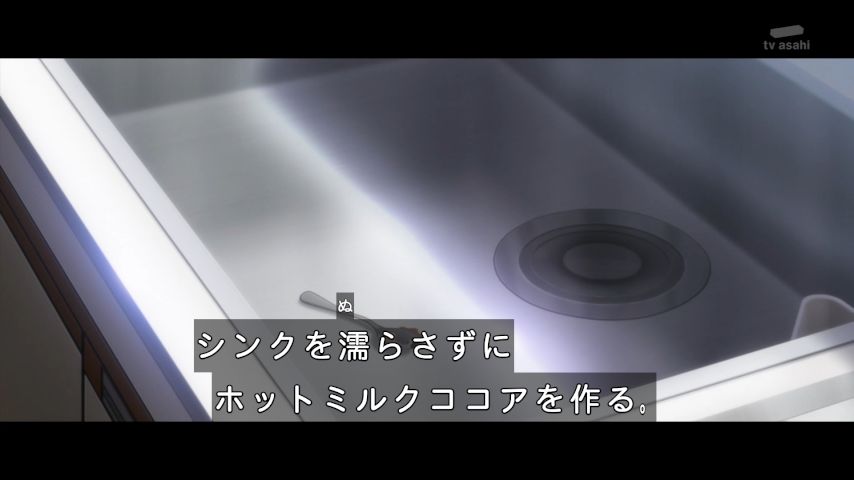 #小市民 2話、タルトを潰され、盗まれた自転車が悪事に利用された上、教師に怒られた小佐内さん、不幸過ぎる。3年前の小鳩は今より積極的だったのか。何かあったな…。シンクを濡らさずにホットココアを作った謎に挑戦。手が込んだ事するなあと頭を悩ませてたら、ズボラの極地だったという真相に笑。